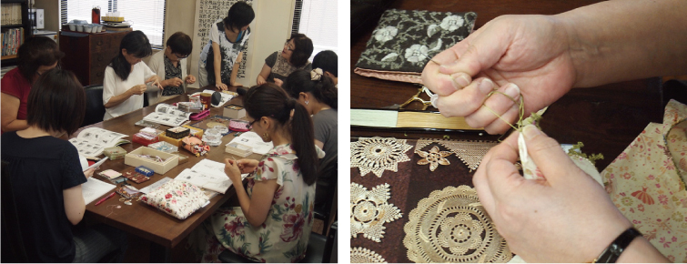 このイーネ・オヤ講座を2011年1月より、京都に初めて導入したのが当協会です。 オヤのなかでもイーネ・オヤは、関西でも正式に学べる場が少ないことから、関西一円から熱心な受講生が集まりました ●とき:毎月1回 第3水曜日13:30〜16:00 ●講師:小島優子先生(オヤの会講師・レース作家)
