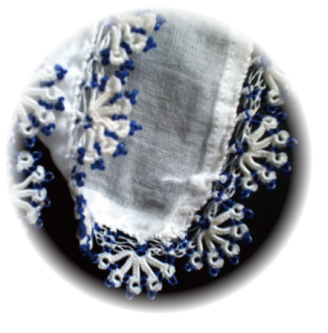 オヤ(縁飾り)とは、スカーフなどに見られるトルコ伝統の手工芸レース。なかでもイーネ(縫い針)・オヤは、かぎ針ではなく、縫い針で芸術的な立体刺繍をつくりあげます。トルコでも古い歴史を持ちながら、世界ではたいへん珍しいとされるこのレース編みは、高度な技術を要することから、トルコでも作り手が減っているといわれます。